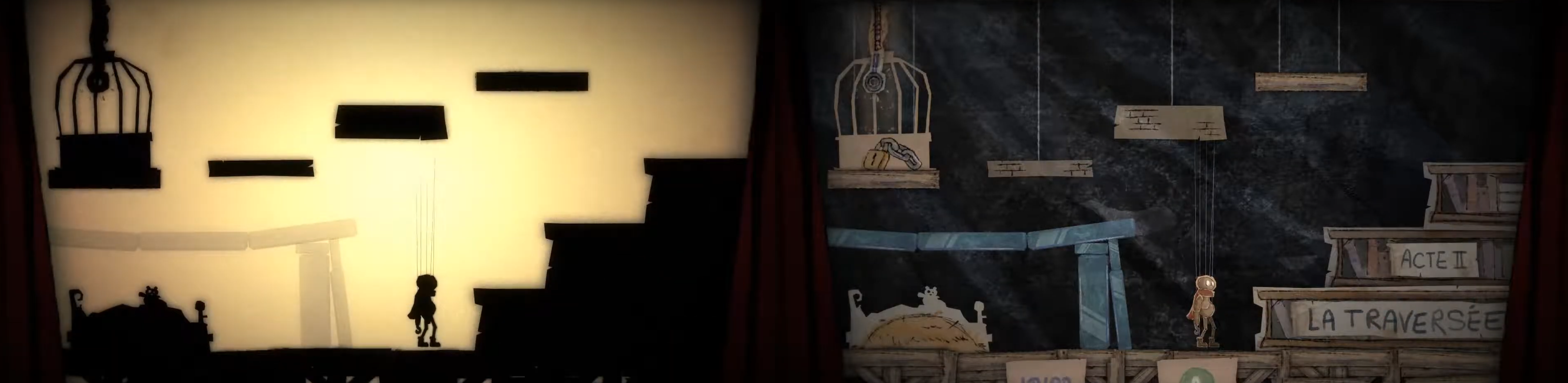 Behind the Scenes is a Narrative Puzzle-platformer game playable on PC. The player controls a puppet and its shadow on a theatrical stage. With the ability to put or remove a sail on the screen, they are able to change their perception of the level.