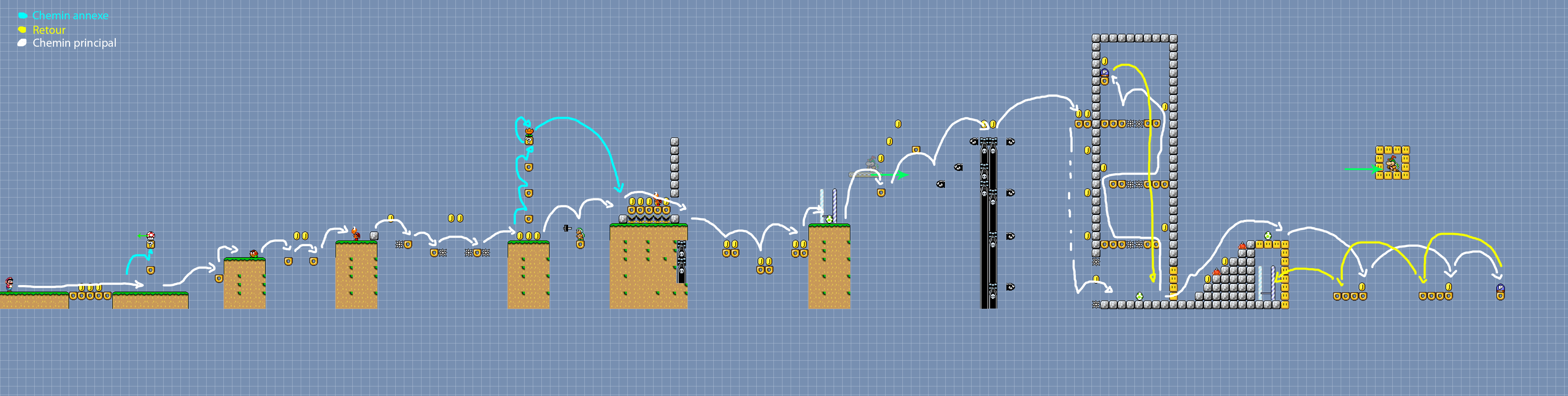 A level created for the Super Nintendo Title Super Mario World. The goal of this exercice was to create a well constructed level around one mechanic from the game, while trying to stay as coherent as possible.
